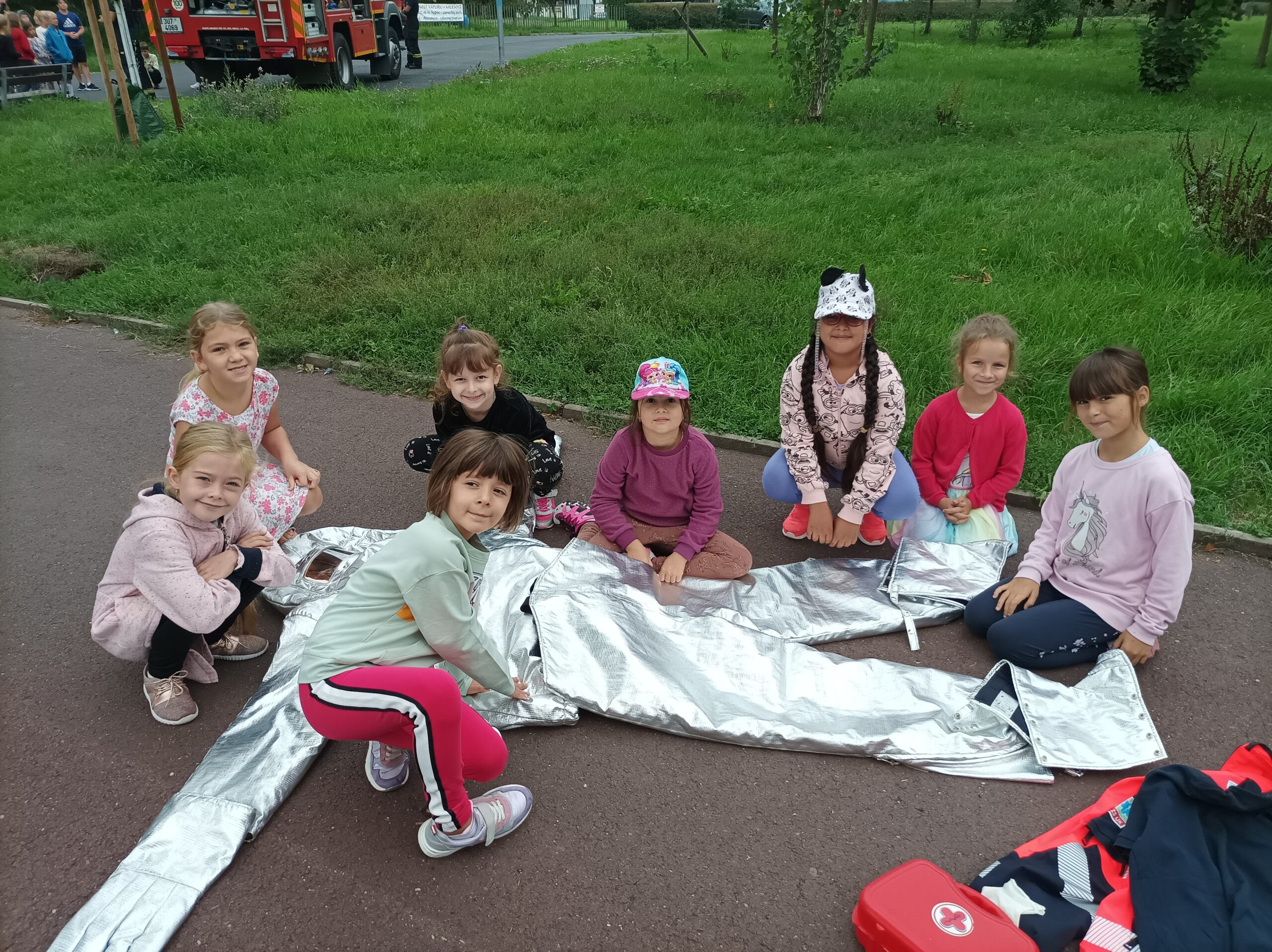 Prakticky si vyzkoušeli poskytování první pomoci a navrhovali vhodná řešení. Na dalších stanovištích si připomněli důležitá telefonní čísla, jak postupovat při nálezu nebezpečného předmětu a jaké složky patří do integrovaného záchranného systému. Odbornou stránku projektu zajistili hasiči HZS Lovosice, kteří si pro žáky připravili aktivní stanoviště s prohlídkou hasičského vozu.