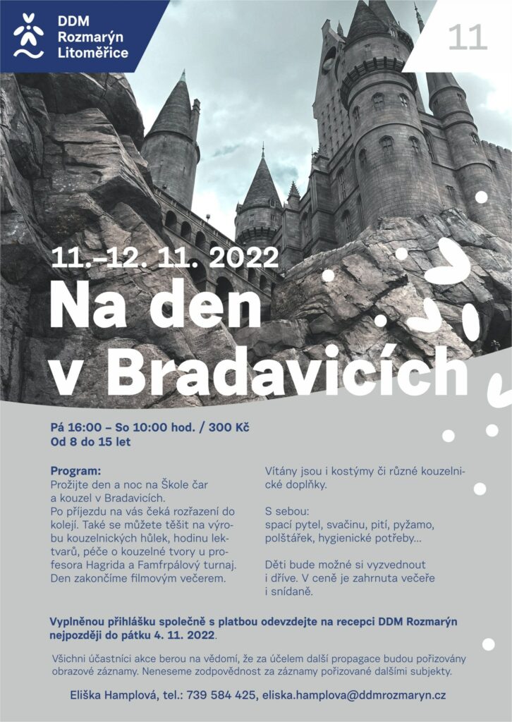 Výlet do Bradavic začíná v pátek 11. listopadu v 16 hodin, končit bude v sobotu 12. listopadu v 10 hodin dopoledne – děti je možné vyzvednout i dříve.