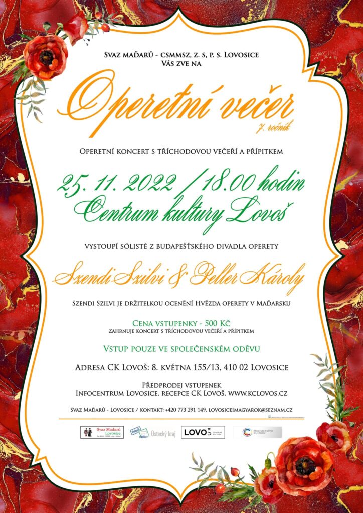 Lovosice – Do centra kultury Lovoš v Lovosicích se po několika letech vrací Operetní večer. Uskuteční se v pátek 25. listopadu od 18 hodin. Předprodej lístků je v plném proudu – v ceně vstupenky je i tříchodová slavnostní večeře s přípitkem.