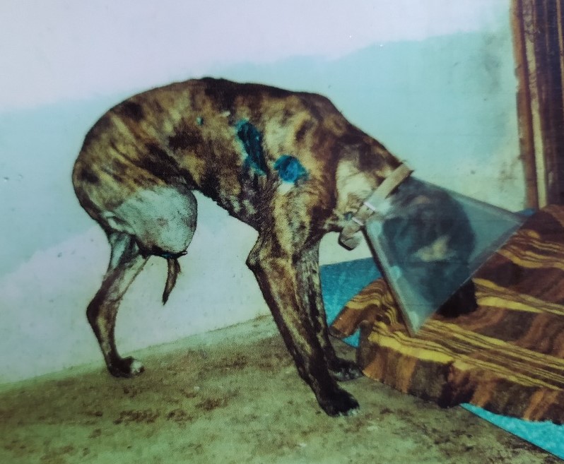 Zhruba roční štěně tehdy zachránili obyvatelé jedné nejmenované obce na Litoměřicku ve spolupráci se starostkou. Pejsek se dostal do útulku v Řepnici. I kvůli mnoha vnitřním zraněním podstoupil bezpočet operací a přišel o nohu.