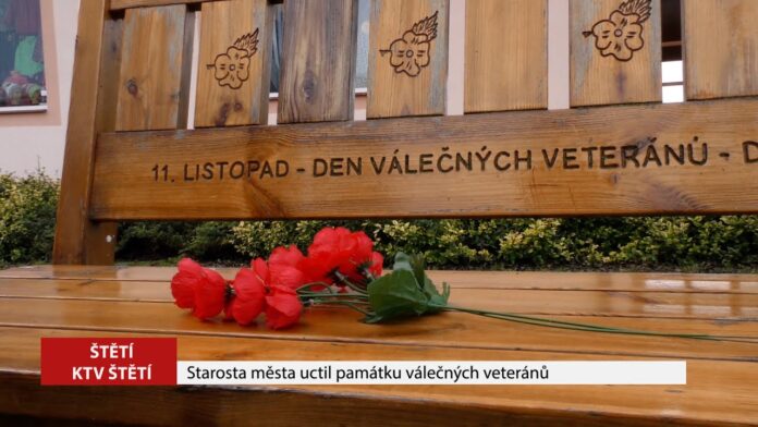 VIDEO: V pátek 11. listopadu v 11 hodin dopoledne připomenul starosta města Štětí Miroslav Andrt památku válečných veteránů. Na symbol úcty k nim a dalším bojovníkům za svobodu položil květy máku na Vzpomínkovou lavičku před budovou kina.