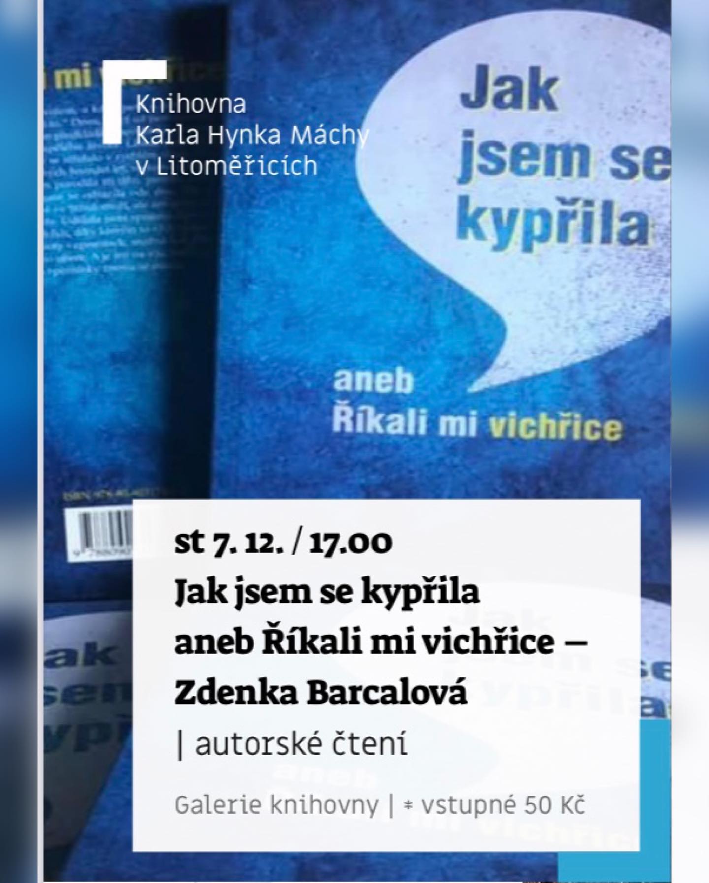 Litoměřice – Zdenka Barcalová se narodila v Litoměřicích, ale deset let žila na Kypru. A napsala o tom knihu. Knihu, která je plná lásky, radosti i zklamání šestnáctileté dívky, která na Kypru vyrostla do sedmadvacetileté ženy. V mezičase stihla porodit tři děti, zhroutit se a zase se odrazit ode dna. Přijďte si to poslechnout do litoměřické knihovny ve středu 7. prosince od 17 hodin.