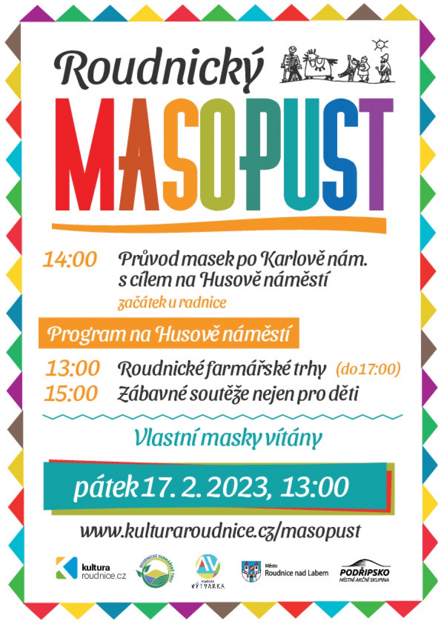 Roudnice nad Labem – Přijďte si do Roudnice nad Labem užít masky a masopustní veselí! Šanci máte už tento pátek 17. února. Průvod masek bude vycházet ve 14 hodin od městského úřadu a poté bude pokračovat na Karlovo a Husovo náměstí.