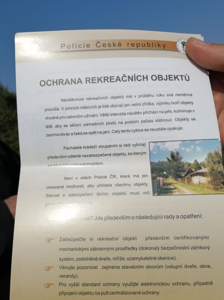 - Další důležitou zásadou je neponechávat v chatě nebo chalupě cenné věci. Zloději se zaměřují na elektrické nářadí, rádia, televize, starožitnosti, elektrospotřebiče, sportovní vybavení a další předměty.