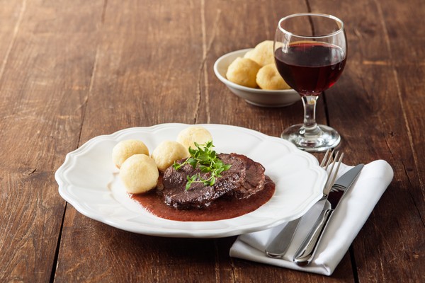 Jako hlavní jídlo si můžete dát jelení guláš s pomalu taženým kynutým knedlíkem (199,- Kč) nebo jelení kýtu na svíčkové omáčce s brusinkami, smetanou a karlovarským knedlíkem (299,- Kč). Ruku v ruce se zvěřinou jdou houby, a tak není divu, že v nabídce jsou také dušené kramfleky z jelena na houbové omáčce s jasmínovou rýží (199,- Kč). Jelení ragú s domácími bramboráčky – to je klasika, která nezklame (199,- Kč).