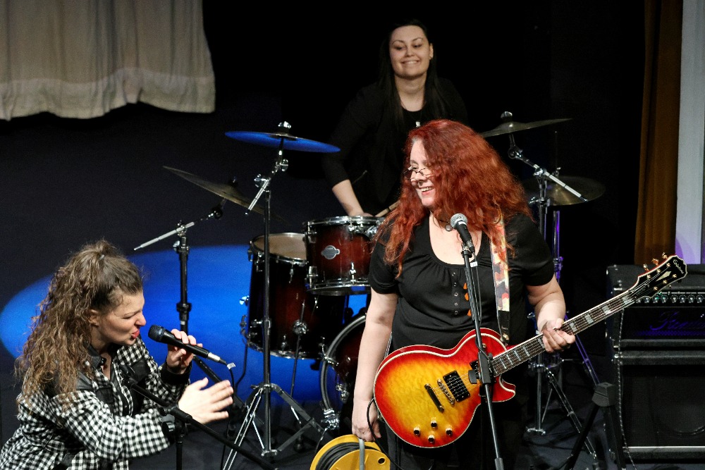 O razantní závěr se postarala dívčí kapela Furie, kterou si jako hráčka na bicí přizvala kantorka Bára Patáková. Rockové decibely jistě „vymetly“ všechny pavučiny v Máchově divadle…