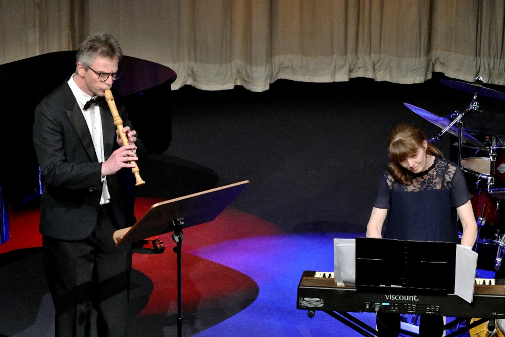 Z pestrého hudebního programu „čnělo“ hned po zmíněné úvodní klasice v podání tria E.Orechová-J.Knotte-M.Olejár vystoupení trojice pedagogů literárně dramatického oboru s improvizačními ukázkami (P. Vágai, L. Pařízková, T. Rozmarová).