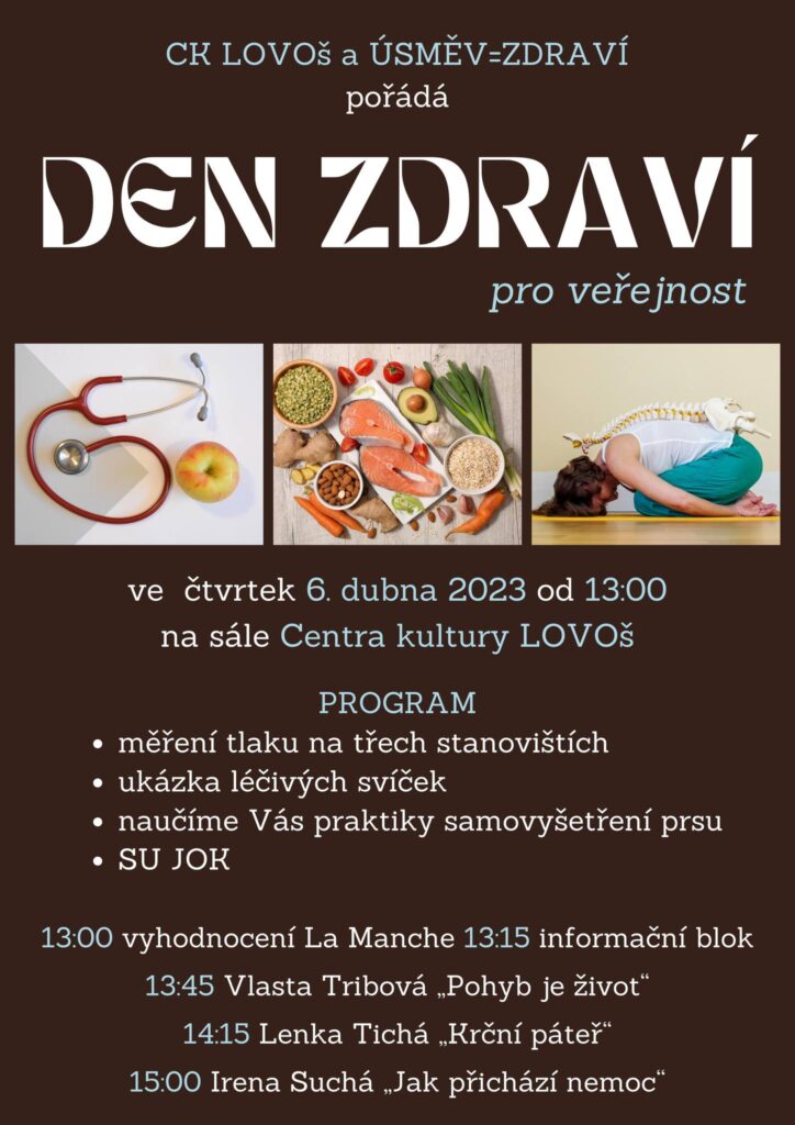 Lovosice – Zapsaný spolek Úsměv = Zdraví ve spolupráci s Centrem kultury Lovoš opět pořádá Den zdraví. A to už ve čtvrtek 6. dubna od 13 hodin.