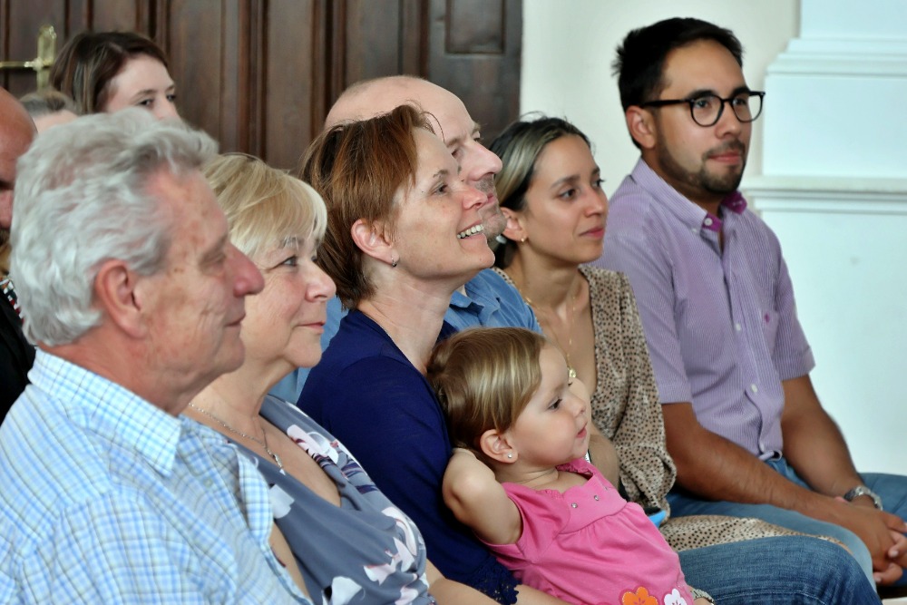 Sbormistr vybalil tašku plnou dárků a poblahopřál každému z členů sboru i doprovodného sexteta. Předtím se dočkali i ti nejmenší ze SamoHlásku – vybírali si z košíku, s nímž je po jejich pásmu obešla Dominika.