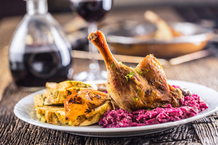 Jako předkrm se bude podávat kachní paštika s hruškovým chutney a podmáslový křupavý chléb. Jako hlavní chod si můžete dát pečené husí stehno s červeným zelím na víně a domácí karlovarský knedlík. Sladkou tečkou na závěr bude svatomartinský rohlíček.