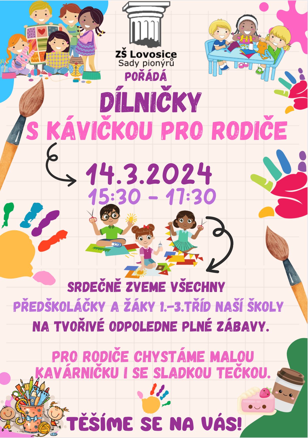 Lovosice – Základní škola Sady Pionýrů v Lovosicích pořádá ve čtvrtek 14. března DÍLNIČKY PRO DĚTI S KÁVIČKOU PRO RODIČE. Akce začíná v půl čtvrté odpoledne přímo ve škole a je určena především budoucím prvňáčkům a jejich rodičům.