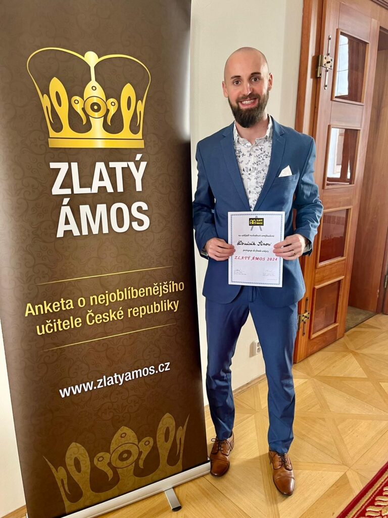 „Za největší úspěch svého učitelství považuju právě finále Zlatého Ámose, protože to je pro mě důkaz, že děti hodiny se mnou baví,“ uvedl Dominik Simon.