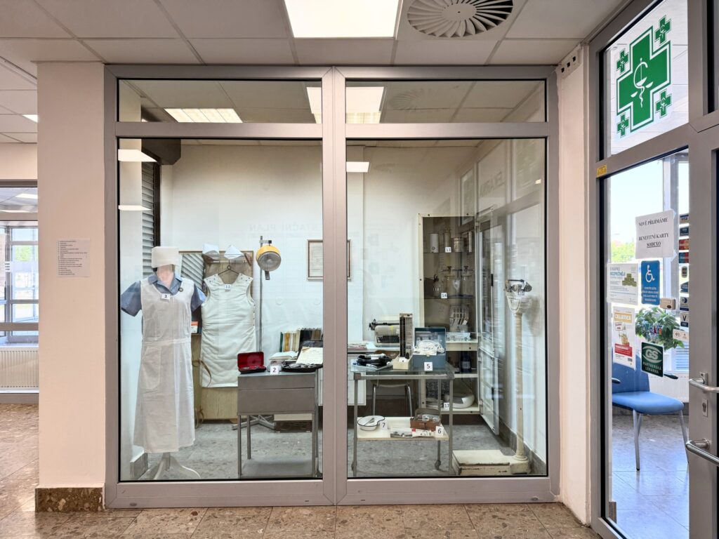 Exponáty našly své místo v dobově zařízené ordinaci umístěné vedle vstupu do nemocniční lékárny. Nechybí mezi nimi například retro uniforma zdravotní sestry, různé druhy nástrojů nebo řád nemocnice z roku 1985.
