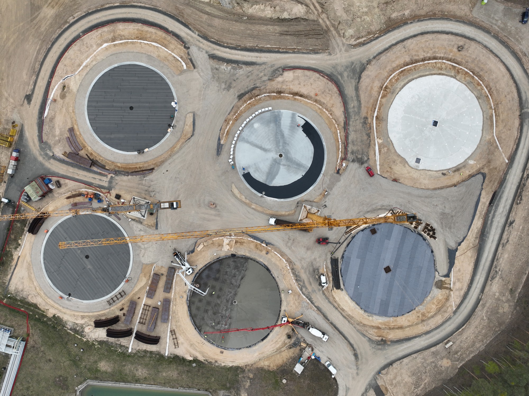 Na staveništi, nad kterým se do výšky přes 60 metrů tyčí dva věžové jeřáby, již započaly práce na montáži čtyř ocelových zásobníků, které budou mít po dokončení výšku 18 m a průměr 34 m. Opodál již čekají na montáž ocelových konstrukcí zásobníků hotové základové desky pro zbylé dva zásobníky. Základové desky zásobníků musí být schopné unést 10 500 tun, což odpovídá hmotnosti více než 260 plně naložených kamionů. Dalším prvkem, kterým základové desky vzbudí zájem, je neobvyklý trychtýřovitý tvar, který umožní snadné vyčerpání skladovaného produktu.