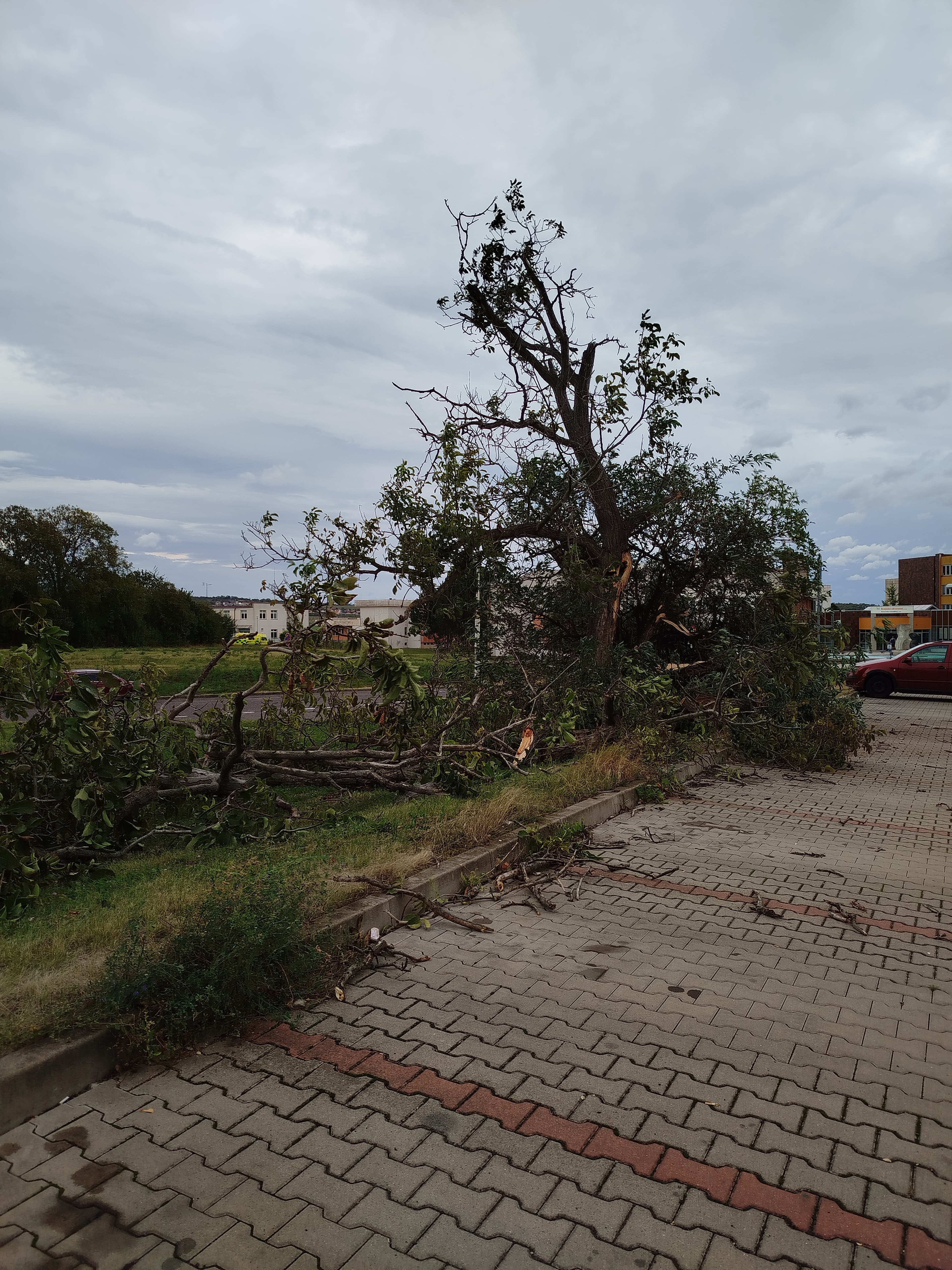 Litoměřice – Hasiči a Městská policie Litoměřice dnes řešili (kromě jiného) také padající strom na parkovišti u nemocnice. Strom poškodil zde zaparkovaná vozidla.