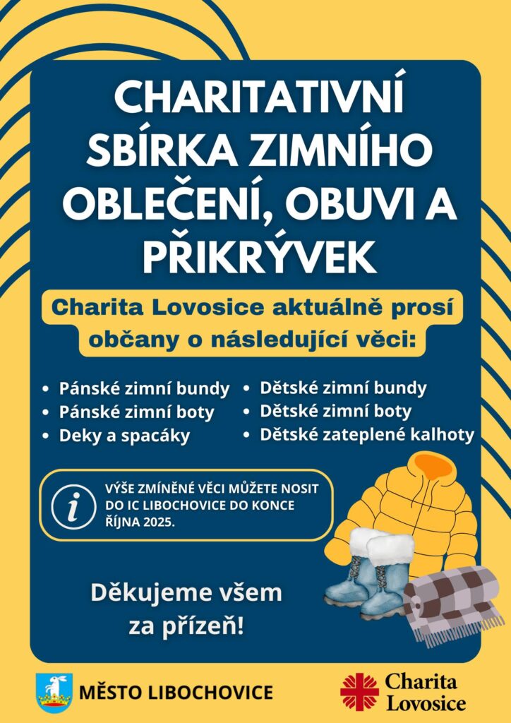 Libochovice – Až do konce října můžete do Informačního centra města Libochovice nosit zimní oblečení. Převezme si ho Charita Lovosice, která ho následně přerozdělí lidem v nouzi a rodinám ve finanční tísni.