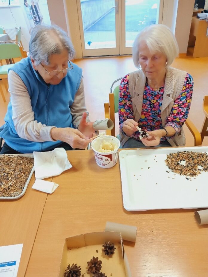 „Během dopoledne senioři s nadšením vyráběli šišky plné semínek, papírové ruličky naplněné oříšky a ovocné řetězy z jablíček, rozinek a burských oříšků. Všechny výtvory byly připravovány s láskou a myšlenkou na to, jak pomoci ptáčkům překonat zimní období, kdy je pro ně potrava vzácná,“ přiblížila akci vedoucí aktivizace a rehabilitace SeniorCentra SeneCura v Terezíně, Jana Alic.