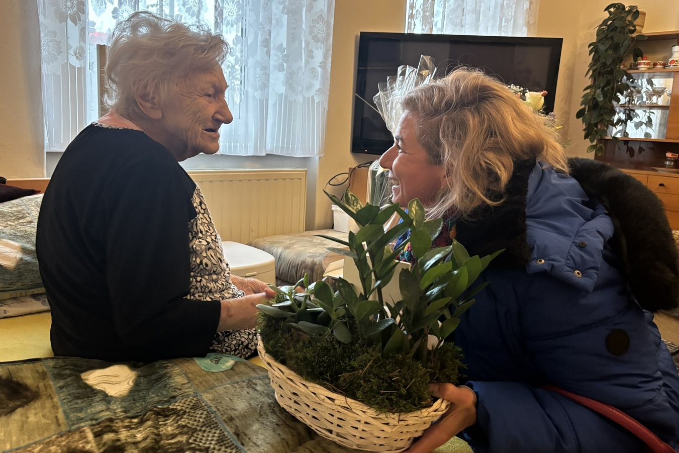 Do domu, kde žije se svou dcerou a zetěm, ji přišly pogratulovat také zástupkyně litoměřické správy sociálního zabezpečení.