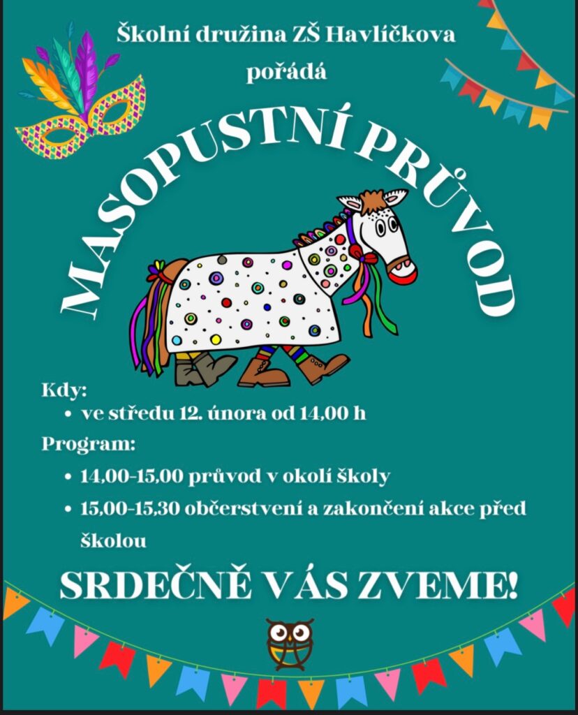 Litoměřice – Školní družina ZŠ Havlíčkova v Litoměřicích pořádá ve středu 12. února MASOPUSTNÍ PRŮVOD. Špalír masek vychází od školy ve 14 hodin a pohybovat se bude v jejím okolí.