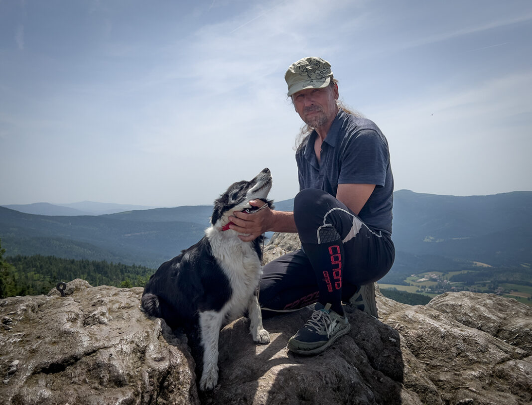 Z nejvýchodnějšího bodu České republiky u Mostů u Jablunkova, přes Beskydy, Javorníky, Bílé Karpaty, Novohradské Hory, Šumavu a Český les do nejzápadnějšího bodu u Aše. Cestu Petr Nazarov nepodnikl sám – doprovázela ho věrná boarder kolie Bublina.