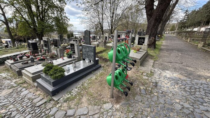 Litoměřice – Město Litoměřice přináší novinku pro všechny návštěvníky hřbitova. Pracovníci Technických služeb města nainstalovali v areálu tři speciální stojany s nářadím a konvemi, které jsou k dispozici pro údržbu hrobů.
