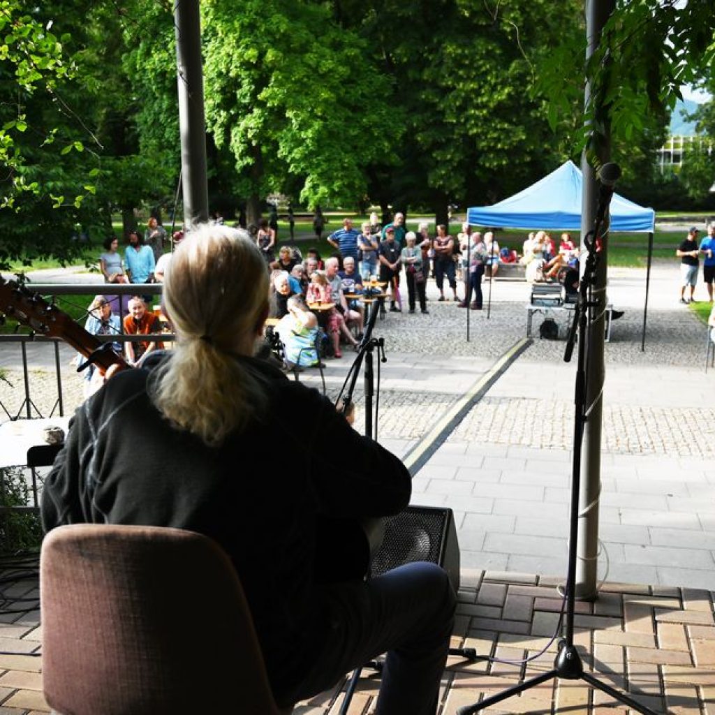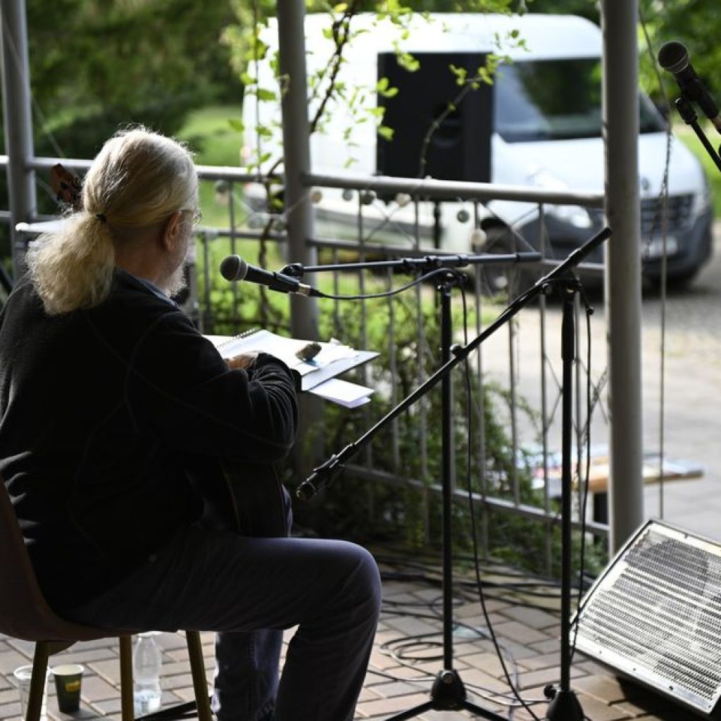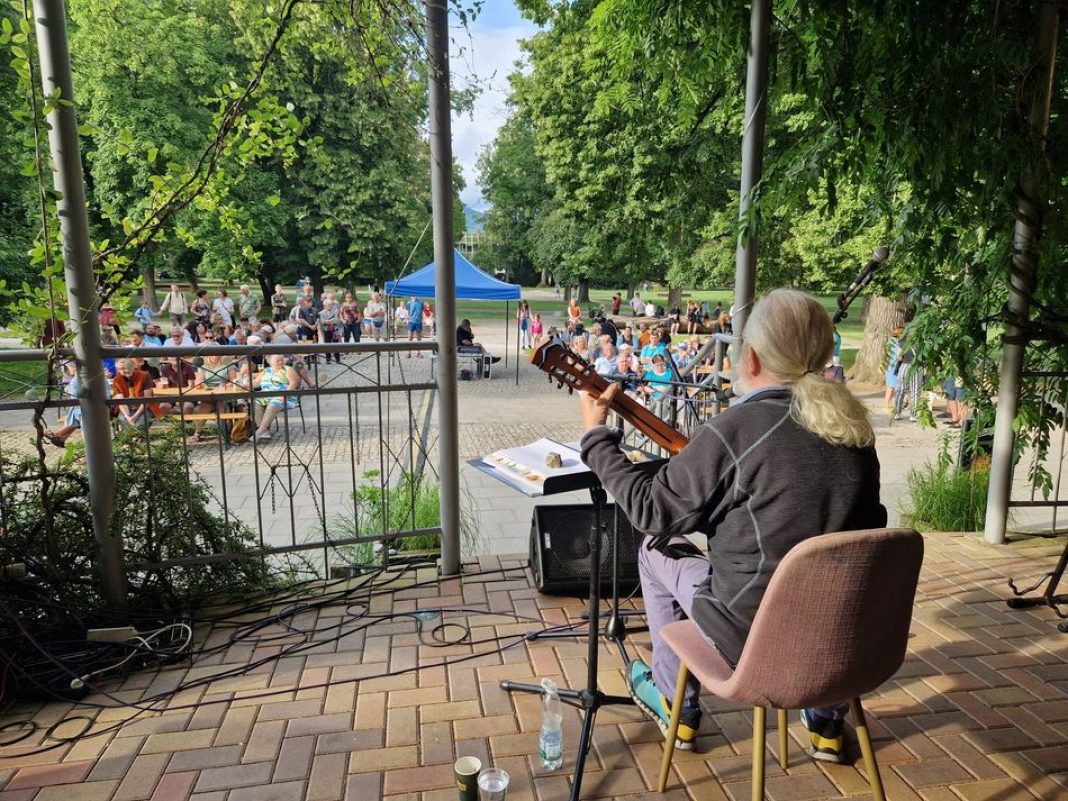 V prostorách kavárny v Jiráskových sadech v Litoměřicích v pátek 27. června zahrál a zazpíval legendární písničkář Jaroslav Hutka. Stalo se tak nedlouho poté, co byla z parku po mnoha desetiletích odstraněna socha vojáka s názvem Čest a sláva Sovětské armádě. Kontroverzní socha z roku 1975, která byla v minulosti Litoměřičany mylně označována za rudoarmějce, měla podle někdejší totalitní komunistické moci oslavovat přátelství československého a sovětského lidu, z dnešního pohledu byla ovšem především normalizačním symbolem okupace Československa Sovětskou armádou. Tlak veřejnosti na odstranění sochy z parku zesílil poté, co Ruská federace v roce 2022 napadla Ukrajinu. Odstranění sochy, která byla převezena do areálu technických služeb, odhlasovalo zastupitelstvo města letos v dubnu. Momentálně probíhá umělecká soutěž, jejíž výsledek určí, co sochu vojáka v parku nahradí.