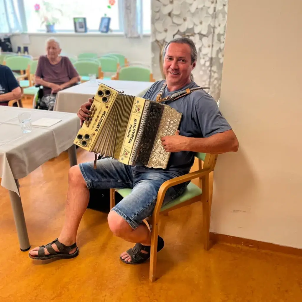 Terezín – SeniorCentrum SeneCura v Terezíně v uplynulých dnech opět navštívil pan Pavel Erich – známý podřipský harmonikář. V zařízení je častým hostem a zdejší senioři ho mají opravdu rádi.