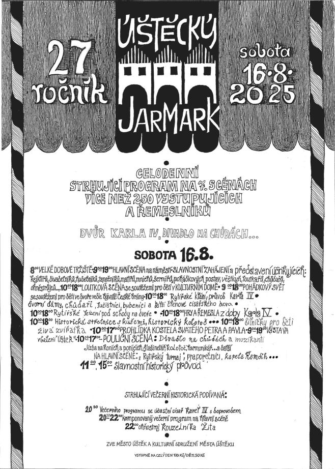 ÚŠTĚK – Historické centrum Úštěku se v sobotu 16. srpna 2025 promění v autentickou trhovou atmosféru. Od 8:00 do 22:00 hodin se uskuteční již 27. ročník Úštěckého historického jarmarku s podtitulem „Návraty do historie“, nabízející nezapomenutelný zážitek jak místním obyvatelům, tak návštěvníkům regionu.