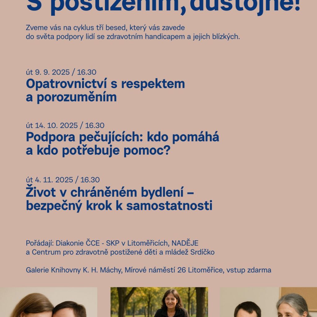 Litoměřice – Galerie Knihovny Karla Hynka Máchy se v následujících týdnech stane místem, kde se bude otevřeně hovořit o životě lidí se zdravotním handicapem i o tom, jakou podporu potřebují jejich blízcí. Připraven je cyklus tří besed, které nabídnou praktické informace i osobní zkušenosti.