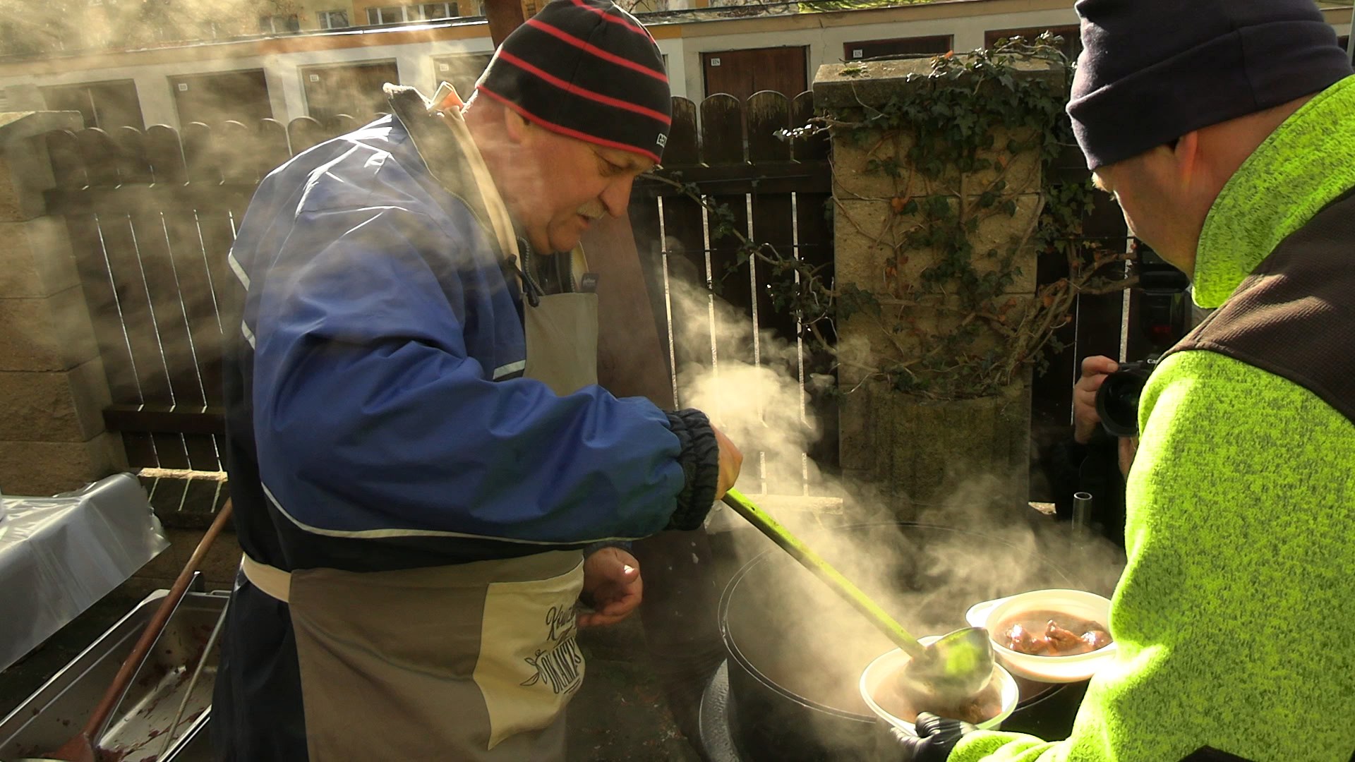 LITOMĚŘICE – Josef Pásztor s přáteli se pustili v sobotu 22. listopadu opět po roce do vaření. Do okolí Krušovické pivnice se už od časného rána vinula libá vůně poctivé kapustnice a také guláše. Od 13. hodiny pak mohli návštěvníci i ochutnat a za odměnu dobrovolně přispět do kasičky – vybraná částka už tradičně poputuje na dětské oddělení litoměřické nemocnice.