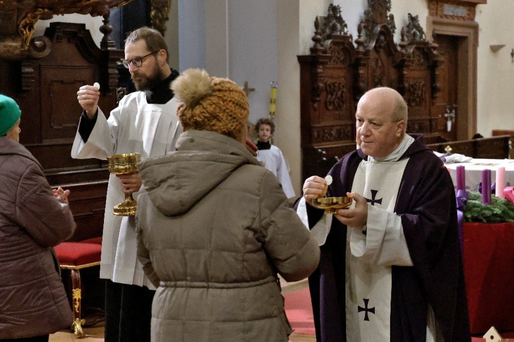 Čtení z knihy proroka Izajáše a z listu sv. Pavla Římanům, a především Matoušovo evangelium naznačily téma promluvy – připravenost na příchod Syna člověka na konci věků. Probošt pak mj. uvedl, že advent není jen přípravou na Vánoce: „Bůh nám dává tento čas jako dar, abychom otevřeli svá srdce Božímu světlu. Evangelista Matouš vyzývá křesťany slovy Krista k bdělosti. Už nastal čas procitnout ze spánku, z duchovní lhostejnosti, neboť nevíme, kdy náš Pán přijde. Nebýt ve strachu, ale v láskyplné pohotovosti a připravenosti k setkání s ním,“ zdůraznil P. Józef. Sv. Pavel použil krásný příměr – abychom se ‚oblékli v Krista‘. Advent je pokračující školou naděje a víry.