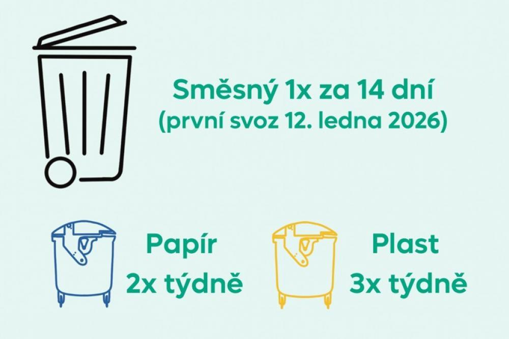 Tip pro občany: Zkontrolujte si svůj kalendář. První svoz v novém režimu připadá na týden od 12. ledna 2026.