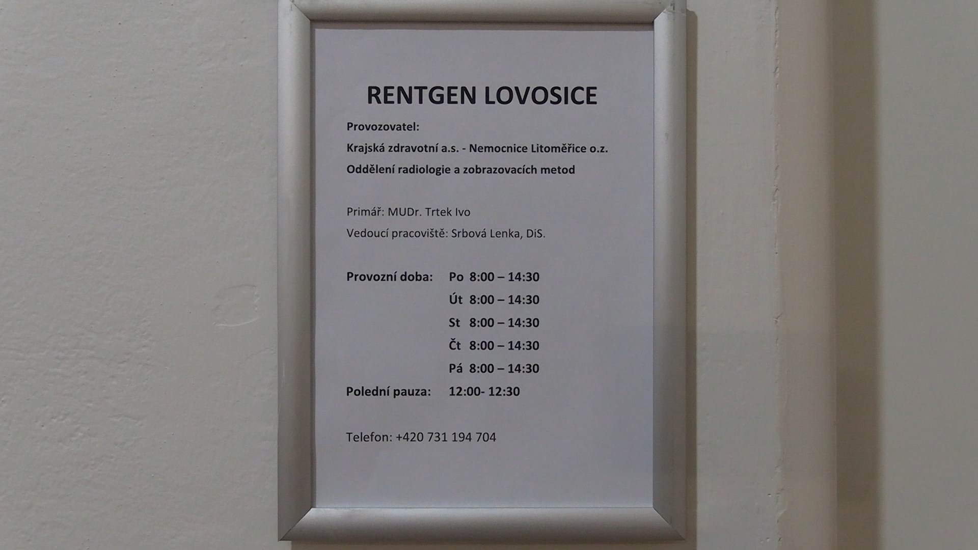 Nové rentgenové pracoviště najdete v přízemí budovy staré radnice v Lovosicích. Provozní doba je pak v pracovní dny vždy od 8 do 14:30.