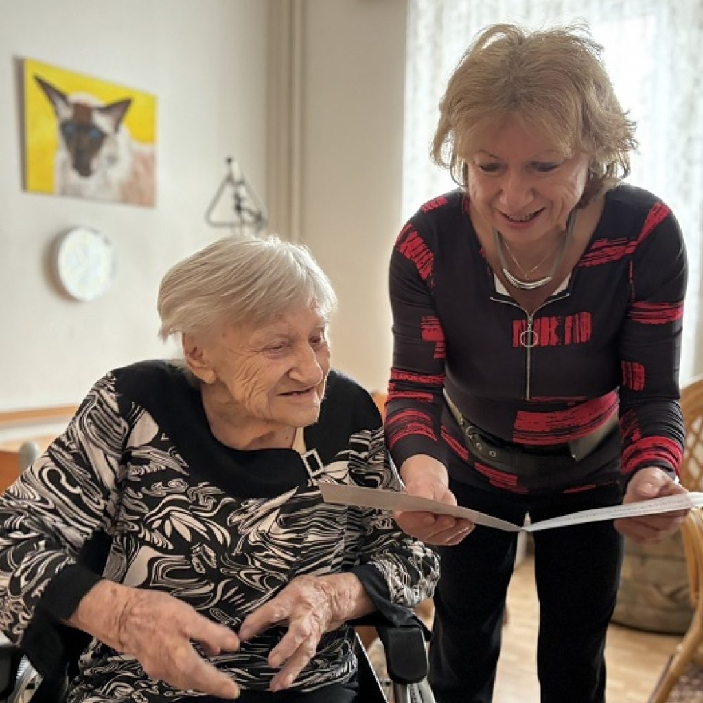 Paní Jaroslava žije v rodinném domě se svou starší dcerou a jejím manželem, kteří o ni pečují. Návštěvu z radnice přivítala s úsměvem a dobrou náladou, jež ji neopouští ani ve vysokém věku.