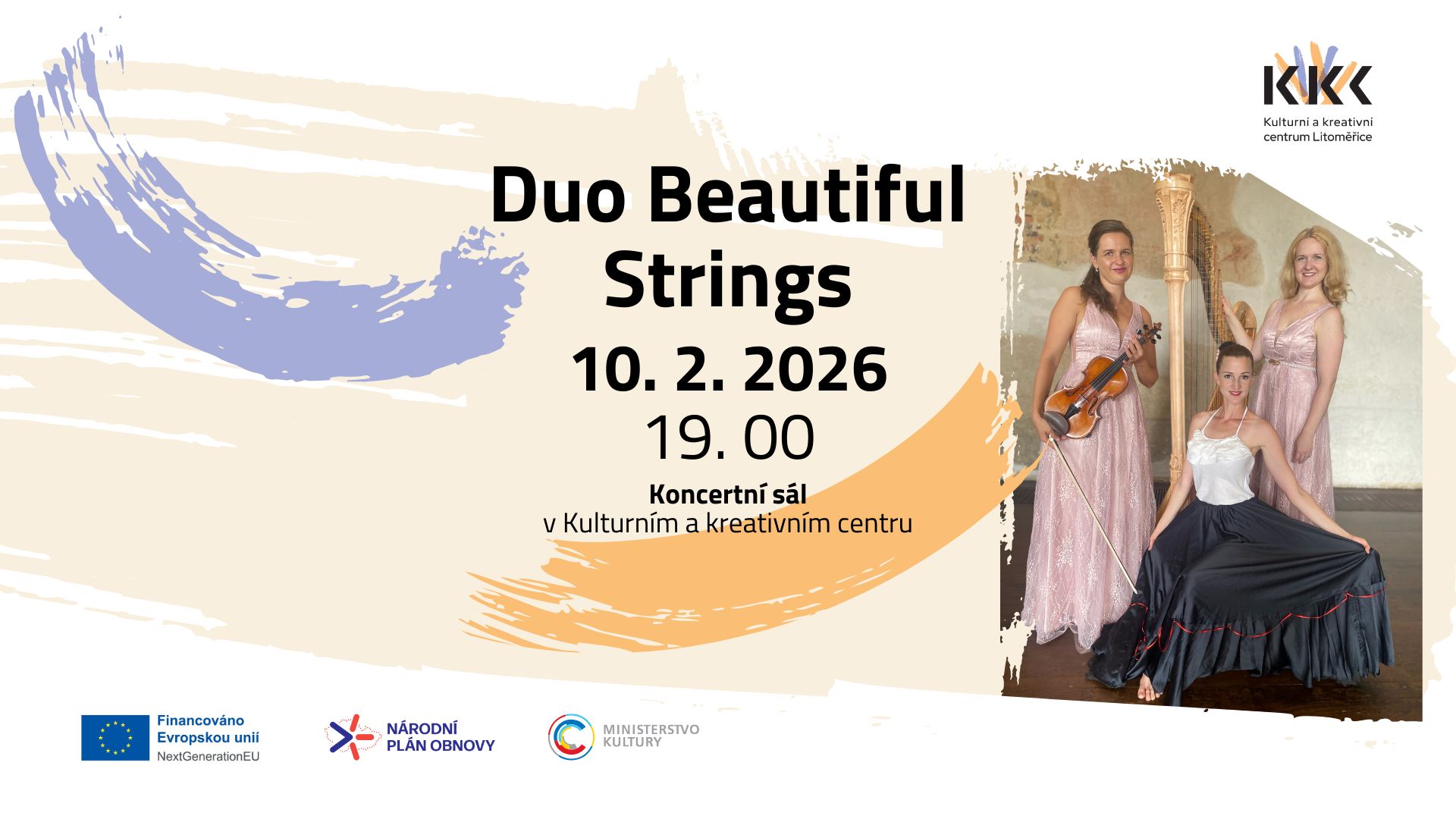 Již v úterý 10. února se prostory Koncertního sálu Kulturního a kreativního centra rozezní spojením harfy a houslí. Interpretační umění Moniky Urbanové a Hedviky Mousa Bacha doplní a okoření živý výrazový tanec Anny Homoly.