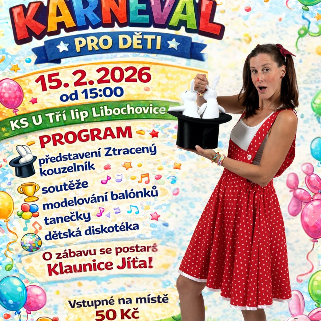 Libochovice – Už tuto neděli 15. února se v Libochovicích koná Maškarní karneval pro děti. Probíhat bude od 15 hodin v Kulturním středisku U Tří lip. Vstupné je 50,- Kč, platí se na místě.