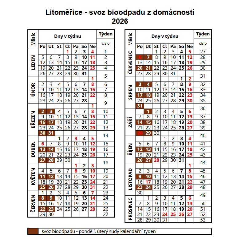 „Nádoby je nutné přistavit v den svozu nejpozději do šesté hodiny ranní nebo ideálně již večer předem,“ připomíná Lucie Weberová z odboru životního prostředí městského úřadu. Svozy budou i nadále probíhat v osvědčeném režimu jednou za 14 dní, a to vždy v pondělí a v úterý v sudý týden.