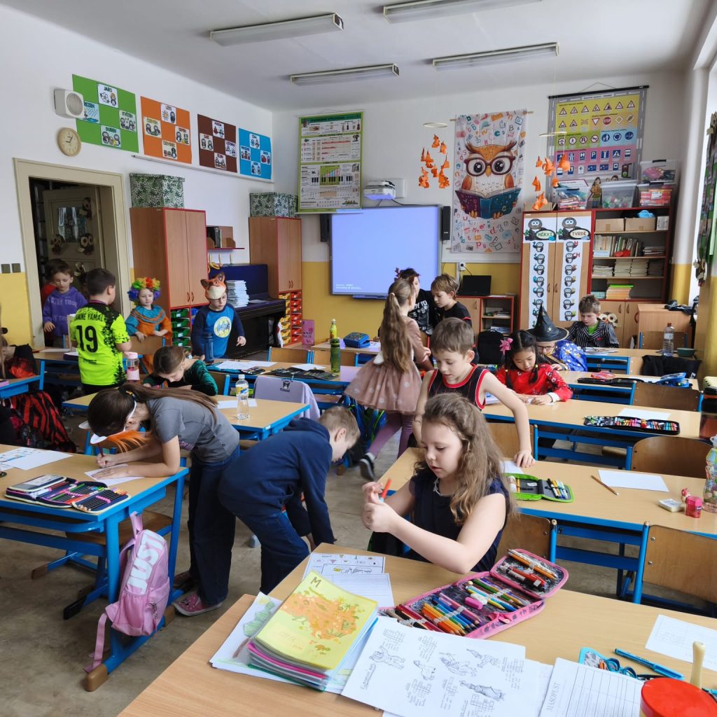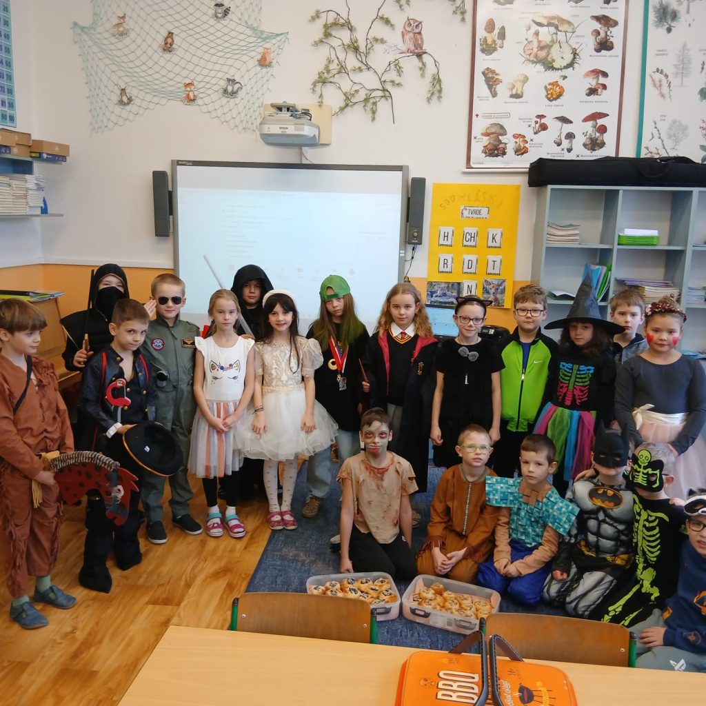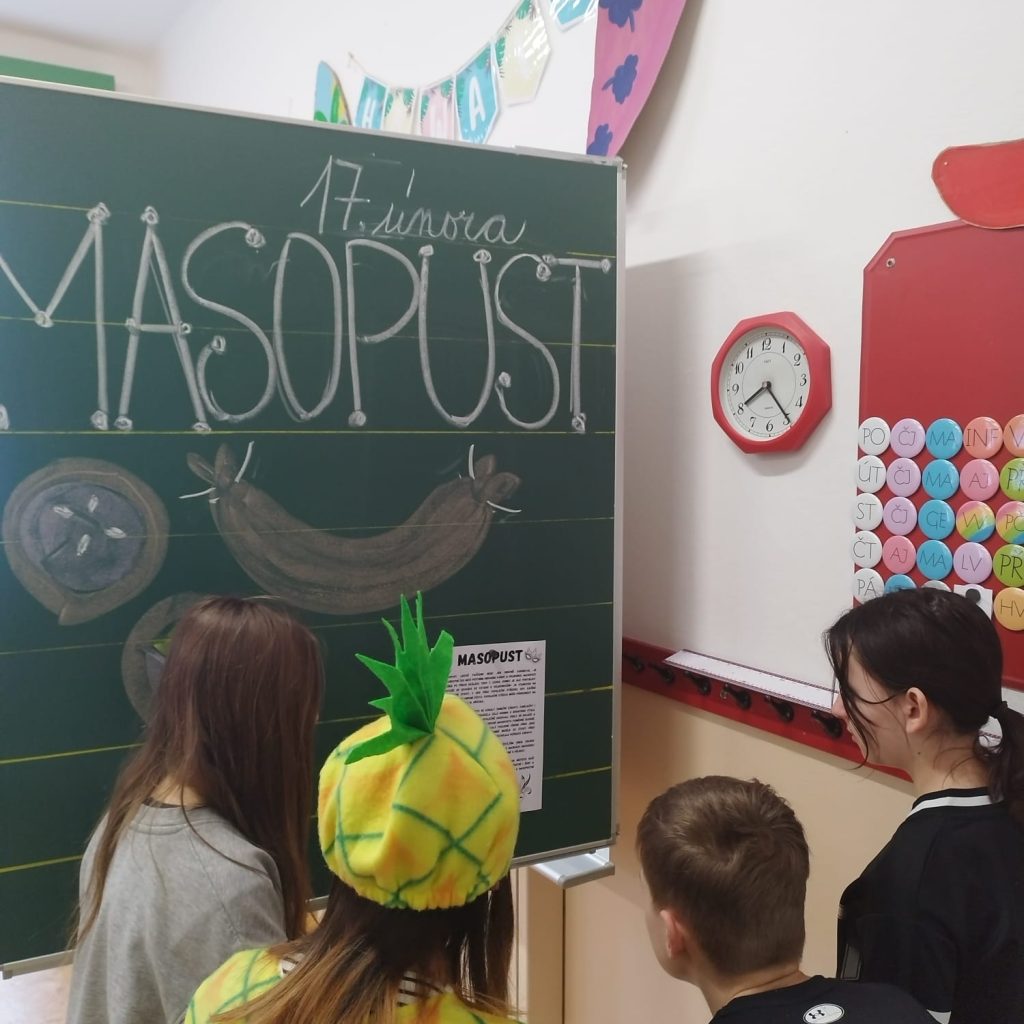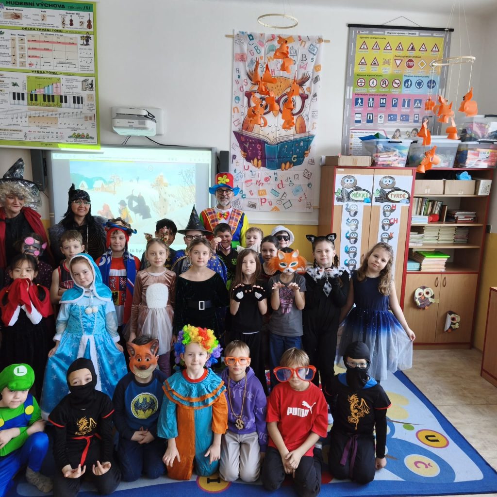 V některých třídách počítali jitrnice a papírové koláče, zatímco v jiných si pochutnali na opravdových – domácích – koblihách. Soutěžilo se, tančilo a zpívalo a nechyběly ani masky a kostýmy. Masopustem zkrátka žila celá škola a všechny nesmírně bavil.