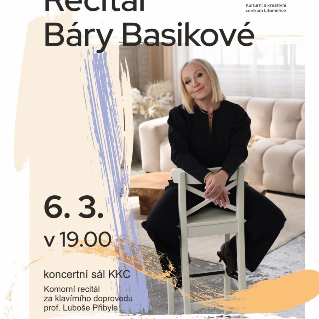 Litoměřice – Litoměřické Kulturní a kreativní centrum má před sebou další zcela mimořádnou událost. V pátek 6. března v 19 hodin se zde uskuteční Recitál Báry Basikové. Zpěvačka, která je na hudební scéně více než 40 let, bude vystupovat za klavírního doprovodu profesora Luboše Přibyla.