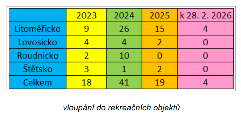LITOMĚŘICKO/TEREZÍN – S příchodem jarních měsíců se majitelé rekreačních objektů začínají postupně vracet ke svým chatám a chalupám. Právě toto období je však kritické z hlediska vloupání. Policisté z Litoměřicka proto v těchto dnech v rámci preventivního projektu „Zabezpečte se, chraňte majetek sobě i svým sousedům“ zintenzivnili kontroly v chatových oblastech u řeky Ohře.