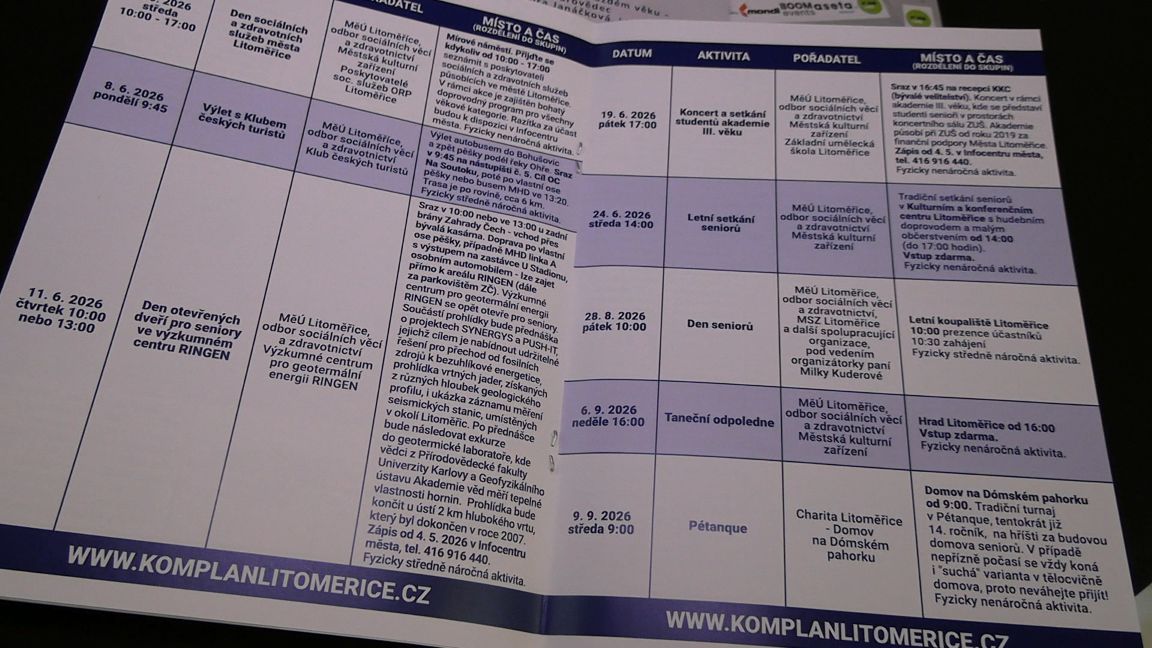„Jsme rádi, že se kampaň těší takovému zájmu. Letošní 13. ročník je opět pestrý a věříme, že si v něm každý najde to své – ať už jde o pohyb, vzdělávání nebo prosté setkávání s přáteli,“ uvedla Mgr. Renáta Jurková z Odboru sociálních věcí a zdravotnictví MěÚ Litoměřice.