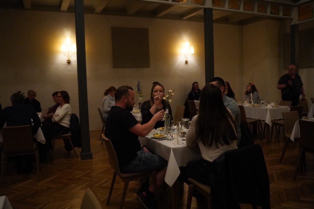 V sále LOVO Divadla se můžete těšit na Cimbálovou muziku Lašár a duo Bratři Hradečtí. Podávat se bude stylová tříchodová večeře.  Jako předkrm je slíben roastbeef s ančovičkovou majonézou, marinovaná cibule, chlebový chips a pažitkový olej. Hlavní chod obstará  glazované uzené maso s křenovou velouté, mandlový knedlíček, jablečný gel a hořčičný kaviár.  A to nejlepší na konec – dezert. Bude to  pečená hruška s tvarohovým krémem, maková drobenka a medový přeliv. Samozřejmostí je vinné párování ke všem třem jídlům.