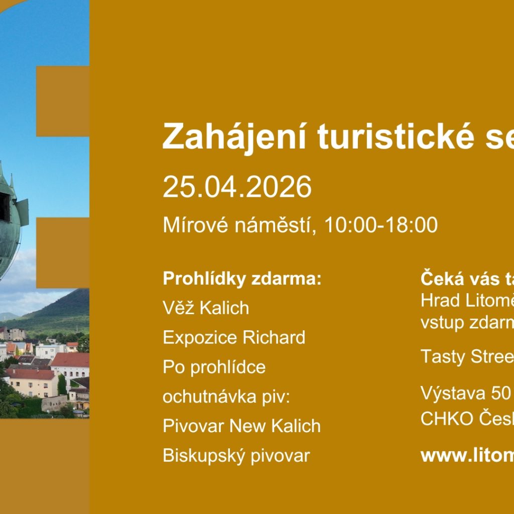 Litoměřice – Litoměřice zahájí letošní turistickou sezónu v sobotu 25. dubna pestrým programem, který oživí celé centrum města. Od 10 do 18 hodin bude Mírové náměstí patřit zážitkům, chutím i poznání. Zdarma budou zpřístupněny oblíbené cíle, jako je vyhlídková věž Kalich nebo expozice Richard umístněná v historickém podzemí pod městským úřadem.