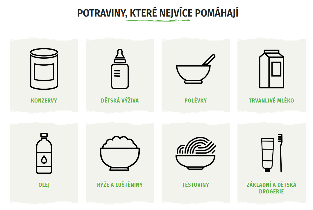 - Základní drogerie (mýdla, šampony, dětské pleny)