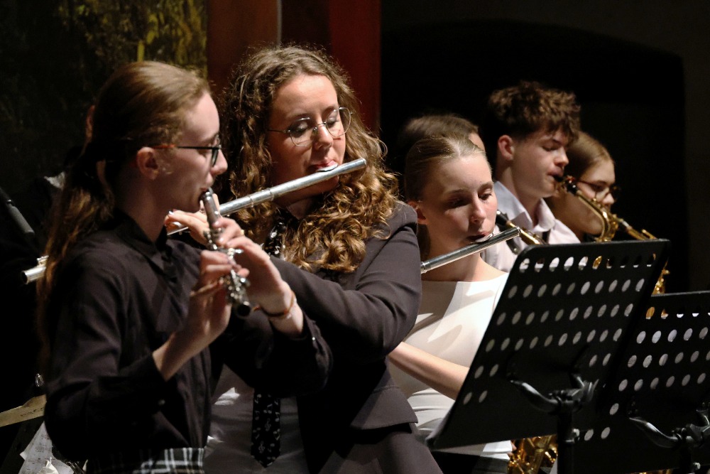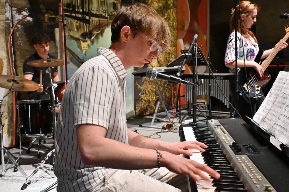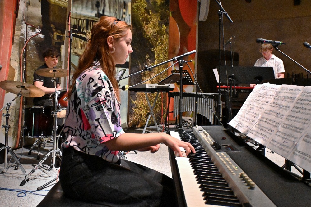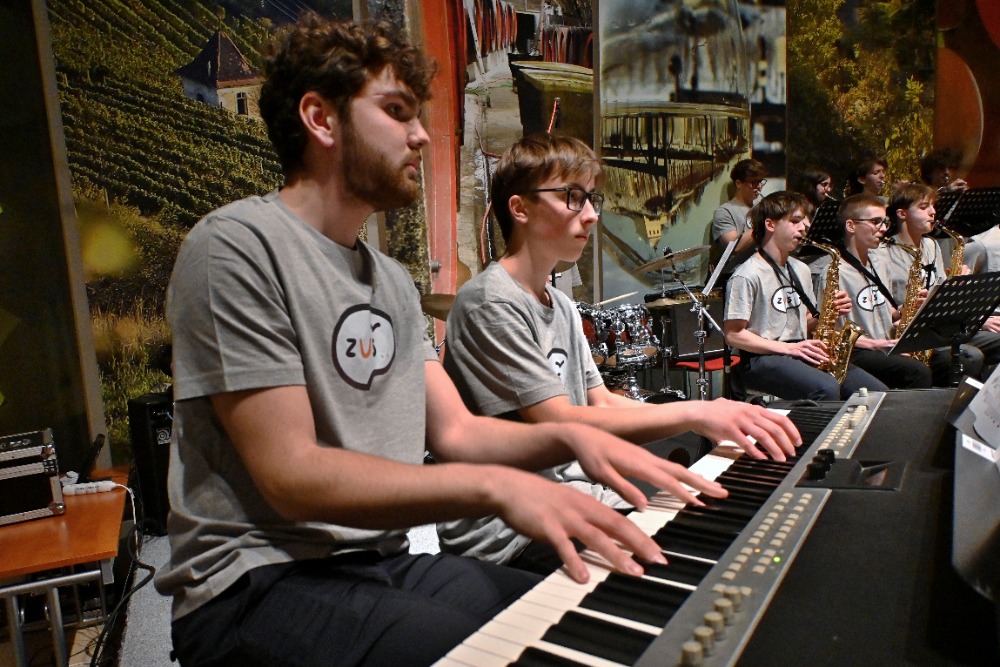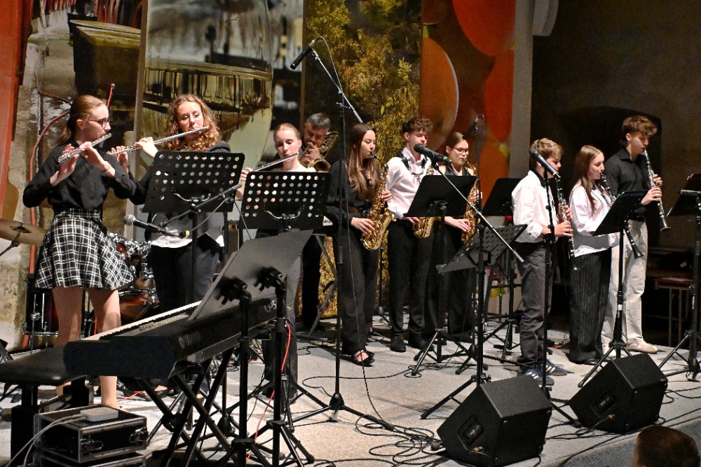 Třeba dodat, že ačkoli je ZUŠka už v novém sídle, koncert orchestrů zůstal u tradice, pokud jde o místo konání – tedy gotický hrad. Zaplněný sál tam tleskal třicítce mladých muzikantů, některým i za výkony ve hře na vícero nástrojů. V tomto ohledu zaujalo „J.A.M. Trio“, kde si dva z tria vyměnili posty za bicími, klávesami, vibrafonem a baskytarou. Jejich náročná a výborně odehraná produkce (aut. Stevie Wonder, Shaun Martin, Herbie Hancock, Chick Corea…), za kterou by se nestyděli ani ostřílení profíci, sklidila u publika možná největší ohlas.